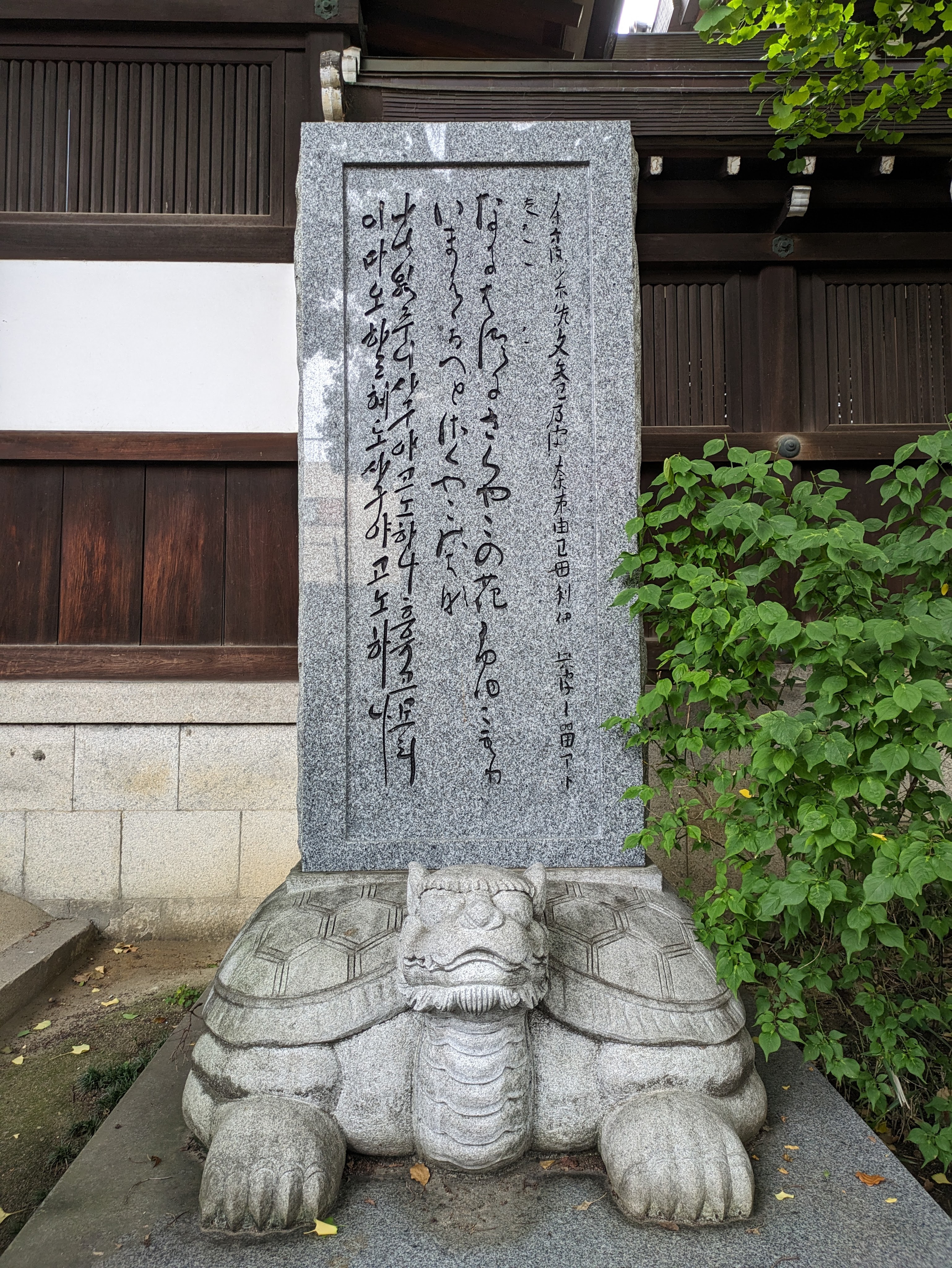 Just a few yards away as though part of a separate ecosystem altogether, is a shrine. 1600 years or so ago, this area was still the seaside. Travelers arrived at the port from the ancient Korean kingdom of Baekche and prayed at Miyuki-mori Shrine.