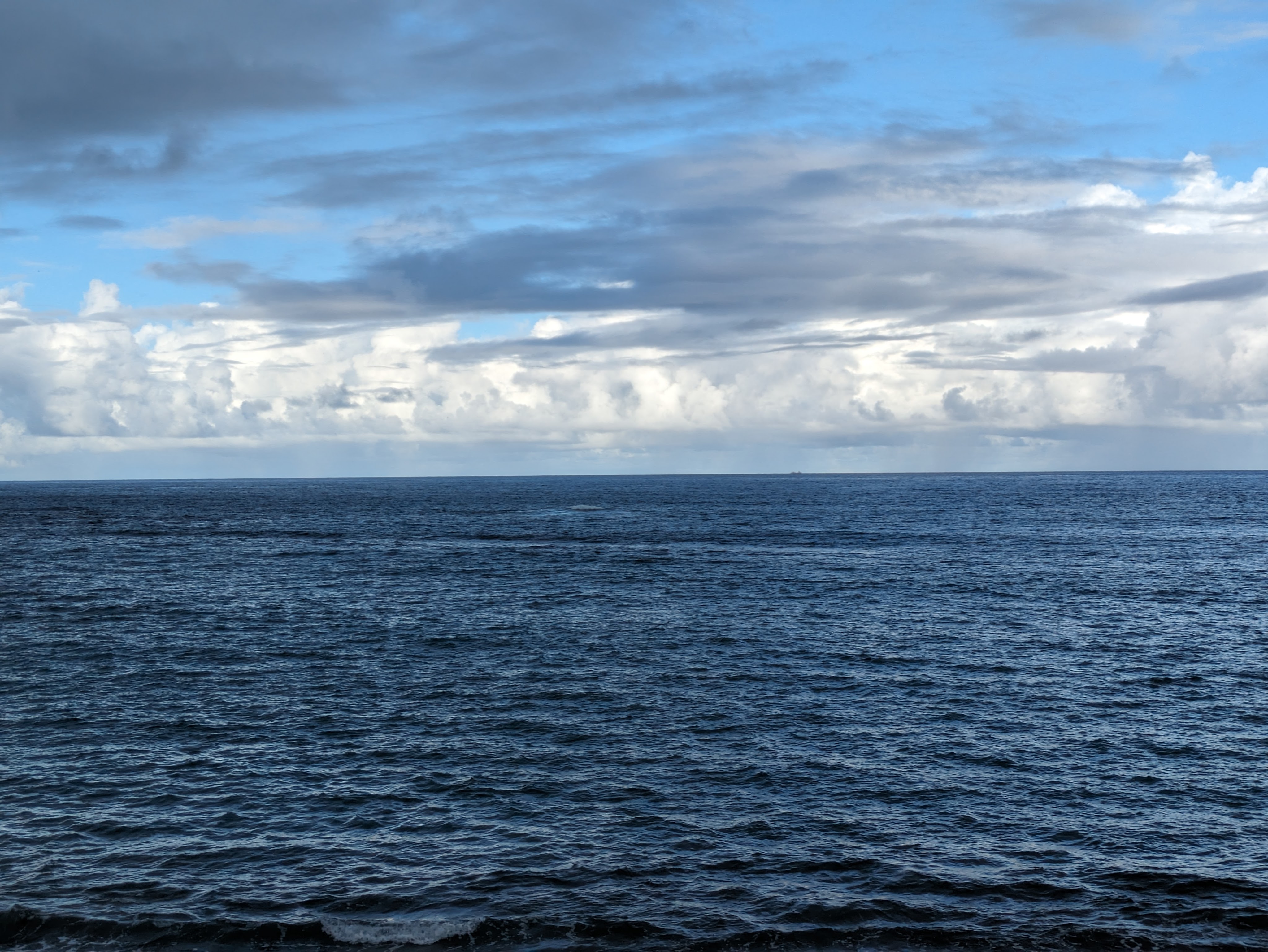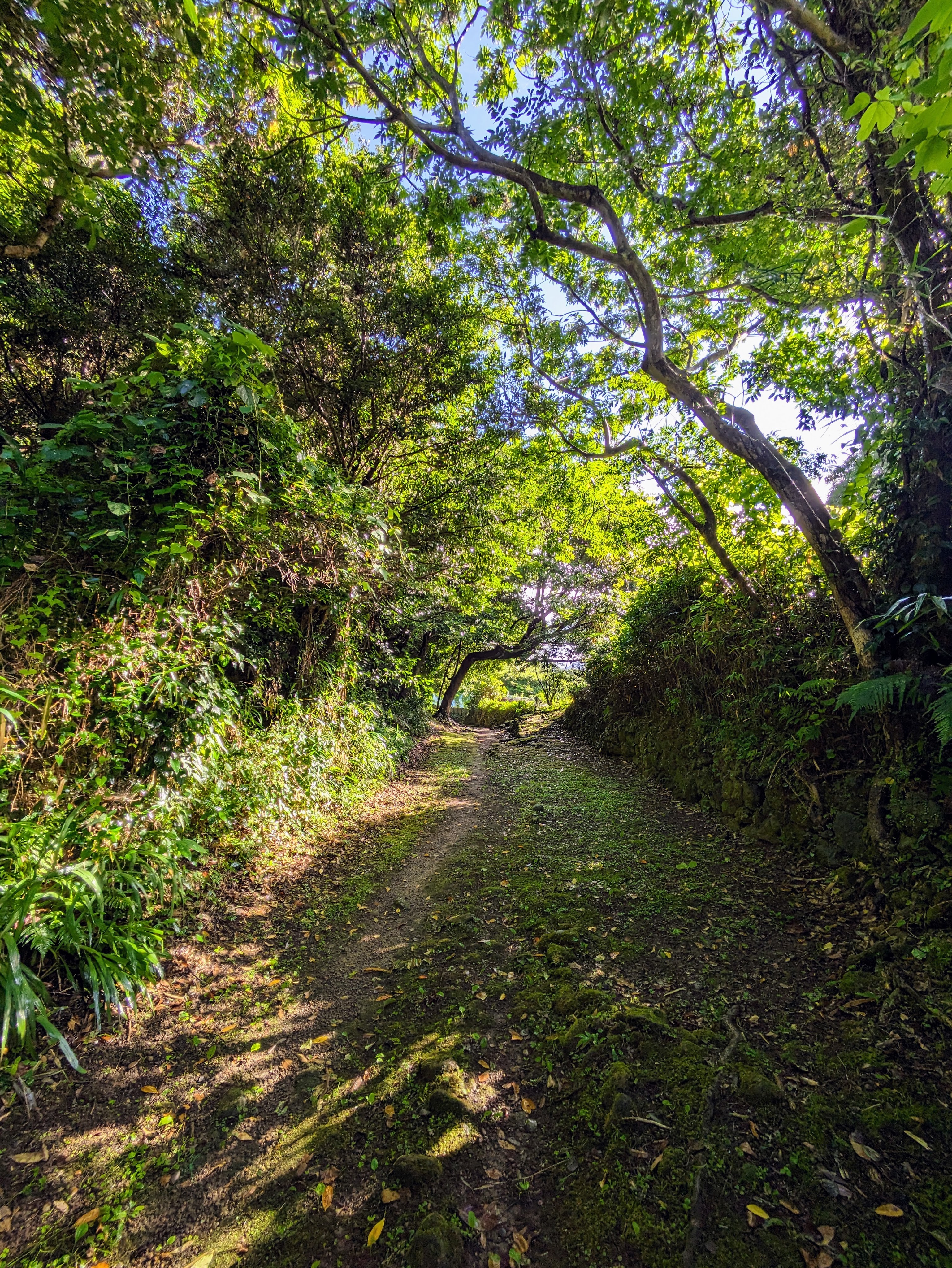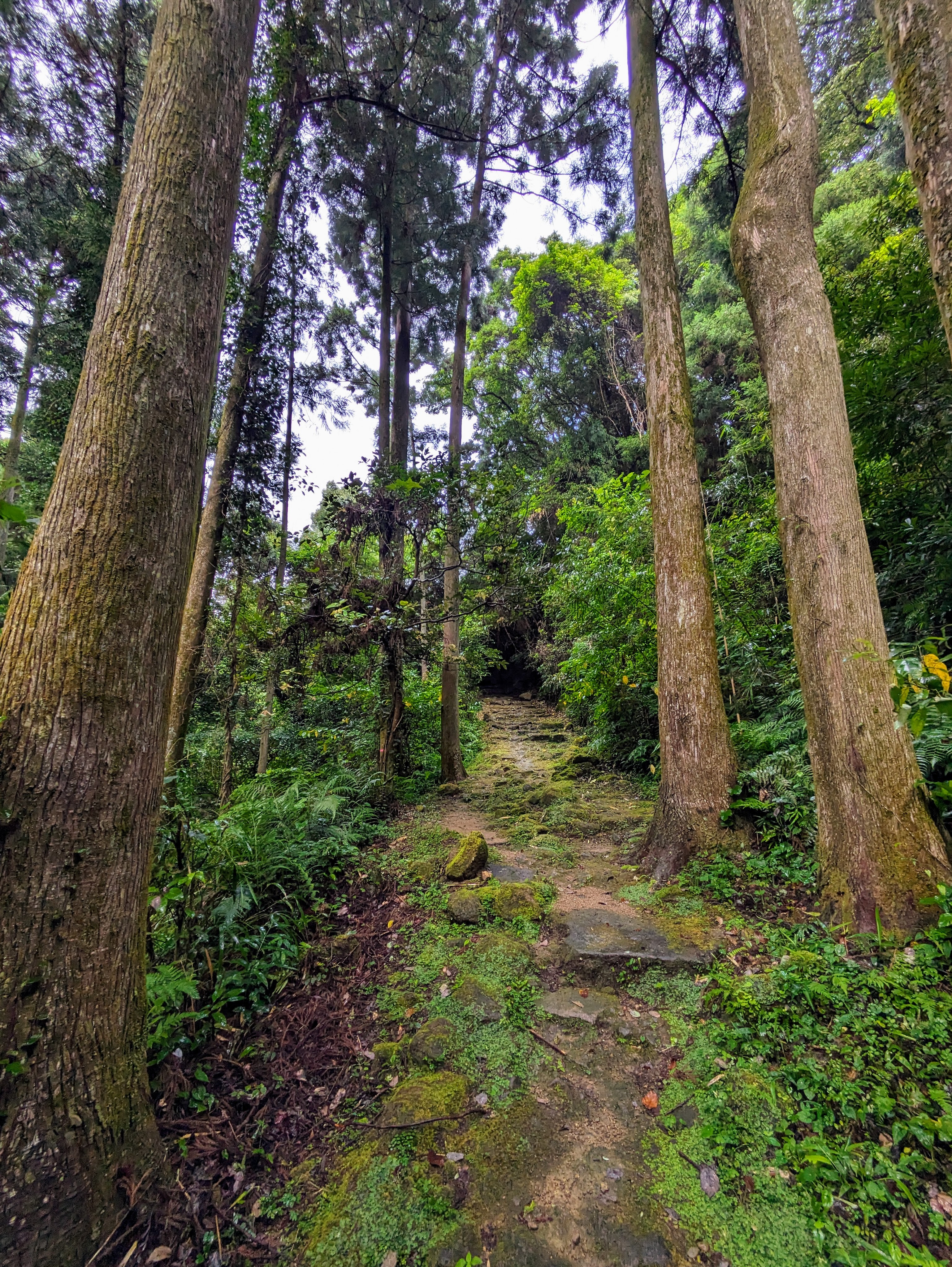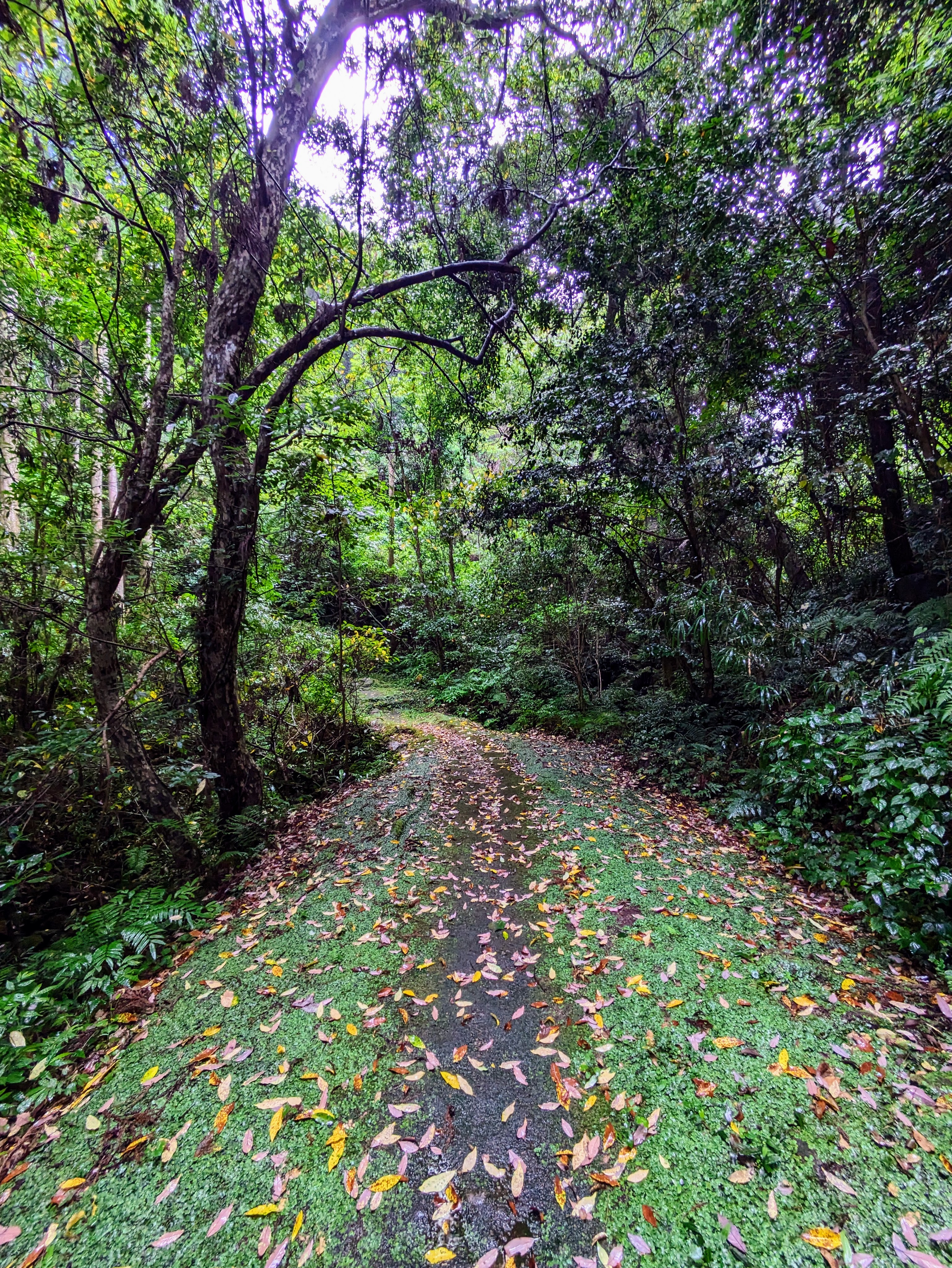 Through a gap in the foliage, the Pacific Ocean reveals itself. Whales frequent these parts. A detour from the main trail leads to a lookout. In the past, villagers sent out smoke signals upon sighting a whale. The fishermen lying in wait by the shore would then set out on their boats to hunt the whale with spears. If the hunt were successful, there would be a celebration in the village. The whale would be cut for consumption, every part used for some purpose. At the time, the sea would have been red. Now the sea is blue-grey, bloodless after the rain.